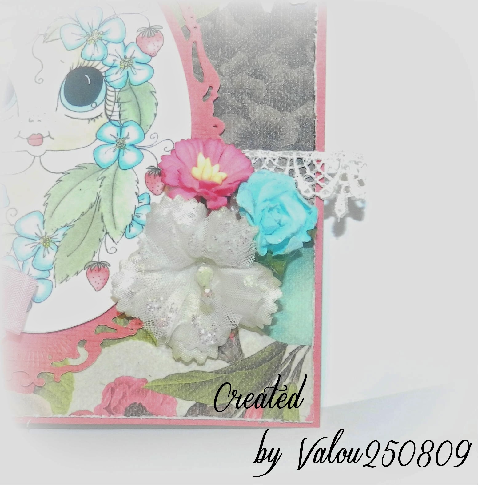 For this card, I used some paper " Prima Marketing ", collection "Madeline". The edges of the paper are used with "Old Distresser".